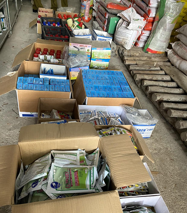 Quá trình kiểm tra phát hiện, cửa hàng này đang bày bán thuốc bảo vệ thực vật và phân bón các loại. Cơ quan chức năng phát hiện cửa hàng này bày bán gần 4.000 sản phẩm là thuốc trừ cỏ, thuốc trừ sâu, bệnh hại cây trồng đã hết hạn sử dụng.