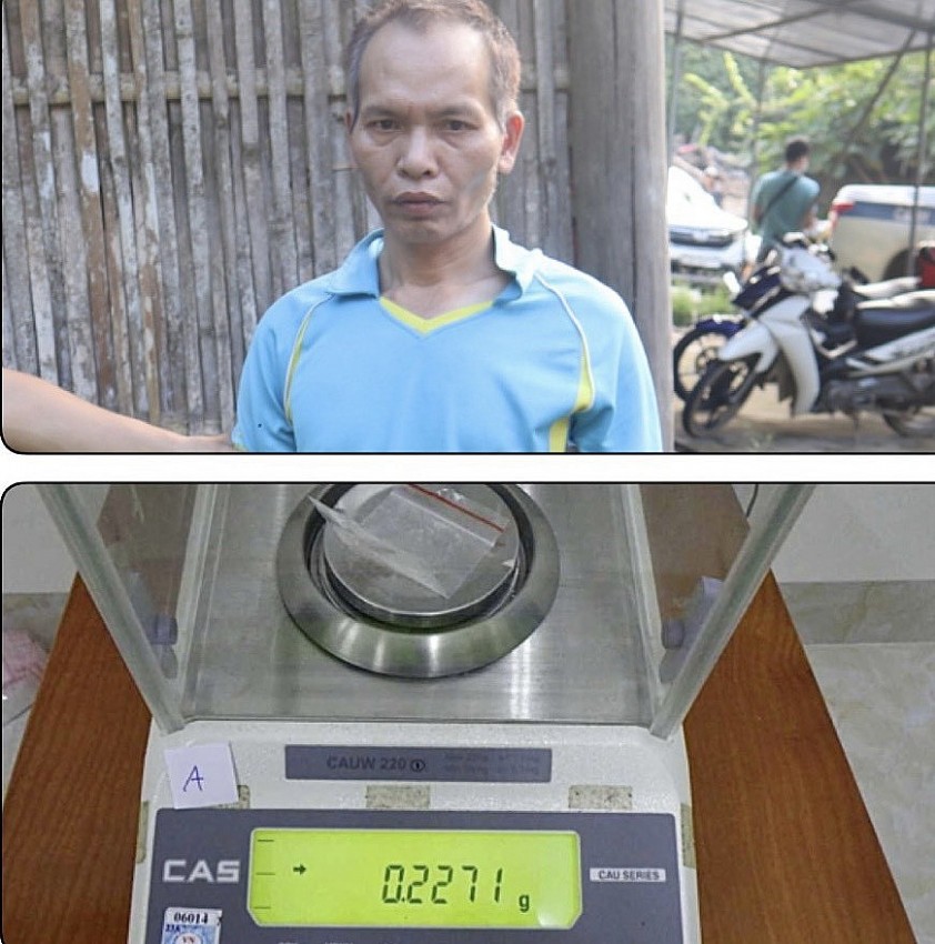 Trong quá trình phối hợp tuần tra, kiểm soát phương tiện giao thông trên tuyến Quốc lộ 34 vào 17h30 phút ngày 7/6, lực lượng chức năng tiếp tục phát hiện đối tượng Hoàng Xuân Cương (SN 1979), trú tại xã Giáp Trung, huyện Bắc Mê và là giáo viên Trường phổ thông dân tộc bán trú tiểu học trên địa bàn có hành vi tàng trữ trái phép chất ma tuý, tang vật thu giữ 0,227g heroin.