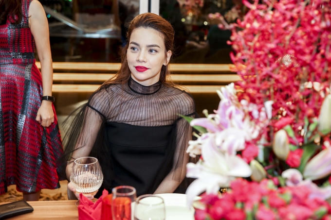 Đặc biệt, đêm tiệc có sự xuất hiện của nữ hoàng giải trí Hồ Ngọc Hà. Có mặt tại buổi tiệc từ khá sớm, giọng ca Destiny ăn vận đơn giản với chiếc váy đen, phần tóc được buộc thả nhẹ nhàng nhưng vẫn toát lên vẻ sang trọng, đài các và sành điệu.