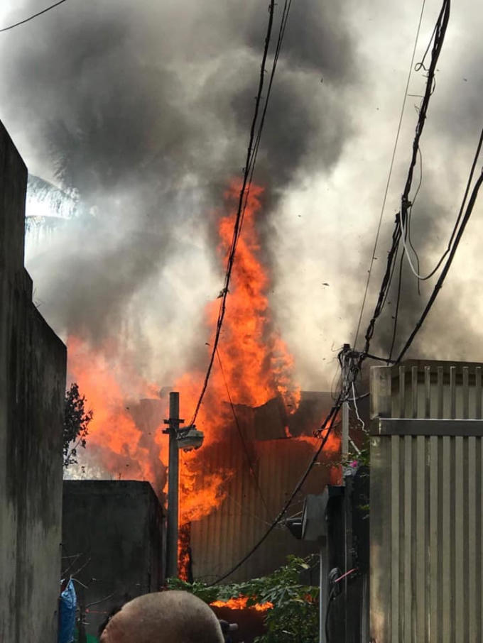 Một xưởng gỗ ở (tổ 7, phường Thạch Bàn, quận Long Biên, Hà Nội) xảy ra cháy lớn, ngọn lửa cháy cao "ngút trời".