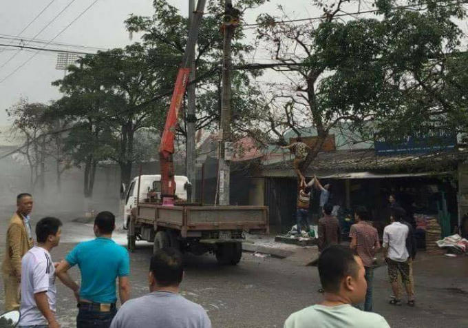 Sau đó, nhiều người đã nhanh trí trèo lên cây gần đó rồi dùng bình cứu hoả để cứu người. Nạn nhân đã rơi từ trên cao xuống đất, toàn thân bị bỏng nặng và được người dân sơ cứu trước khi đưa đi bệnh viện.