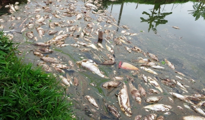 | Hàng tấn cá chết chết nổi trắng hồ. |