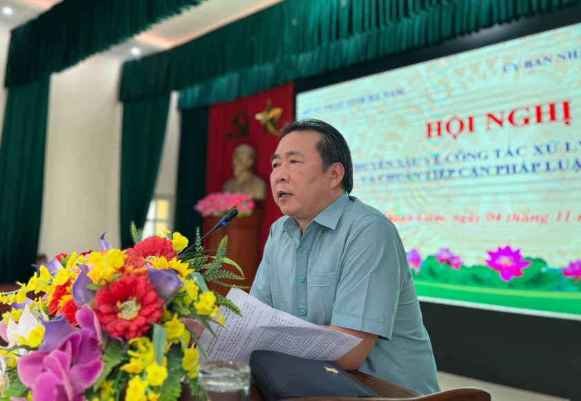 Phát biểu khai mạc Hội nghị, Giám đốc Sở Tư pháp tỉnh Hà Nam Bùi Đức Thái đánh giá cao việc áp dụng và thực hiện các văn bản pháp luật về xử lý vi phạm hành chính đã được các cấp, ngành trên địa bàn huyện tổ chức triển khai thực hiện nghiêm túc, đồng bộ và đạt những kết quả đáng ghi nhận.