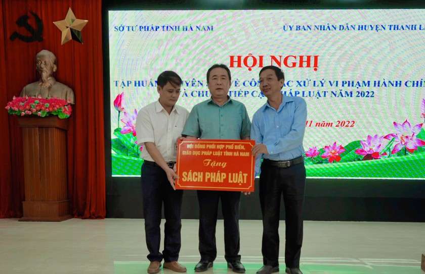 Nằm trong chuỗi hoạt động thiết thực hưởng ứng Ngày Pháp luật Việt Nam (9/11), thông qua Hội nghị, Sở Tư pháp tỉnh Hà Nam cũng trao tặng Tủ sách Pháp luật cho hai xã tiêu biểu trên địa bàn huyện Thanh Liêm, nhằm lan tỏa sâu rộng hơn nữa tinh thần thượng tôn pháp luật đến đông đảo quần chúng nhân dân.