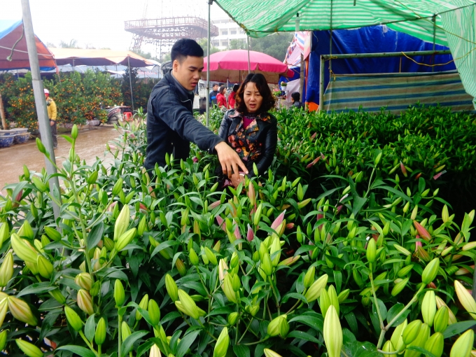 | Mặc dù thời tiết thất thường nhưng vẫn có những cành Ly đẹp phục vụ nhu cầu Tết. |