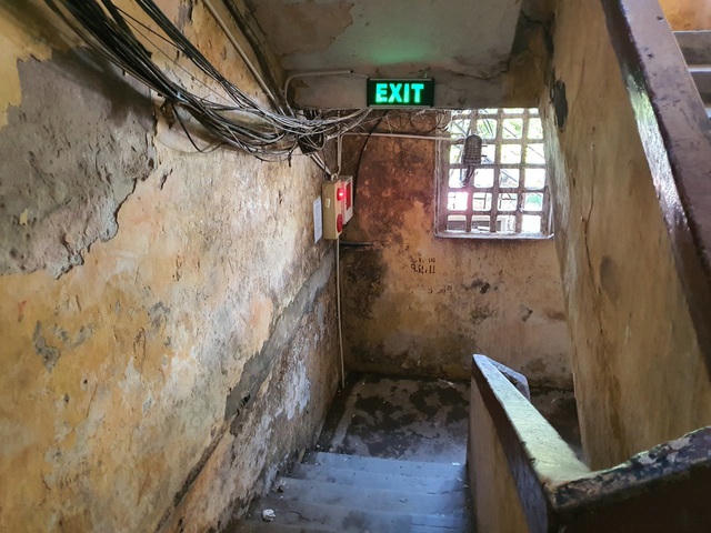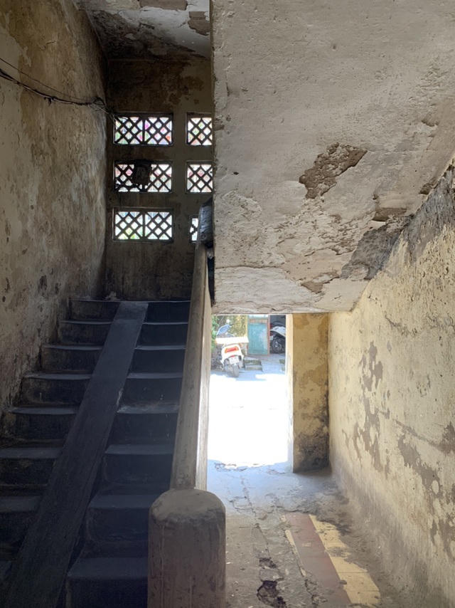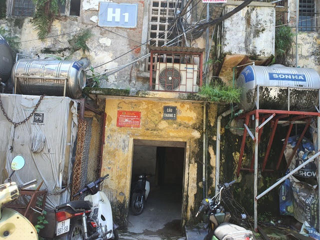Cầu thang trong các khu tập thể cũ đầy ẩm mốc, từng vết loang lổ, phồng rộp theo thời gian với nhiều mảng bong tróc sẵn sàng rơi xuống bất cứ lúc nào.