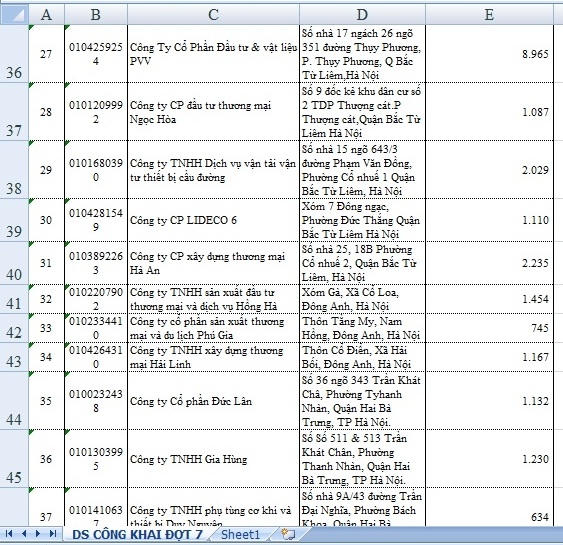 Trong số các doanh nghiệp nợ thuế được công khai đợt này, phần lớn là các doanh nghiệp hoạt động trong lĩnh vực xây dựng. Đứng đầu là Công ty cổ phần thép Bắc Việt nợ hơn 4 tỷ đồng, Công ty cổ phần Đầu tư & vật liệu PVV nợ gần 9 tỷ đồng,.