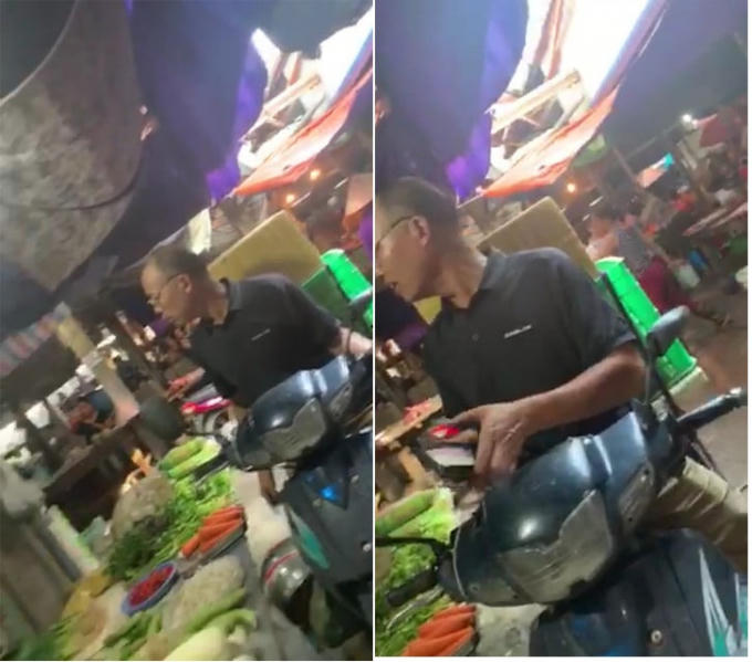 Hình ảnh cắt từ clip ghi nhận một người đàn ông đi mua thực phẩm tại chợ Trường Yên xã Trường Yên, huyện Chương Mỹ, TP Hà Nội.