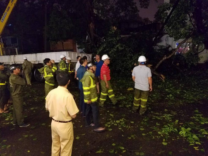 Thấy vậy họ đi ra đường thì phát hiện một cành lớn của cây bồ đề cổ thụ nằm đối diện khu tập thể 38A Trần Phú, quận Ba Đình bị gãy đổ, đè lên nhiều người và phương tiện ở dưới.