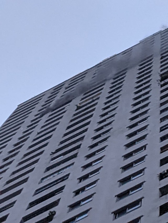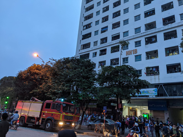 Hệ thống báo cháy và loa phát thanh của tòa nhà có hoạt động. Hầu hết cư dân đã vào thang bộ và di chuyển xuống dưới.