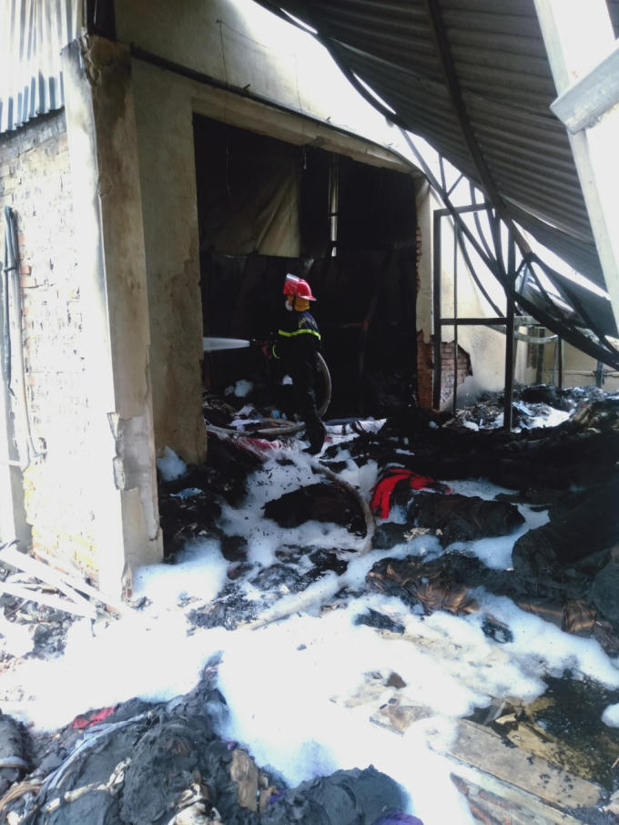 Do khu vực xảy cháy là xưởng sản xuất cắt vải, có quy mô 1 tầng, kết cấu khung thép, mái tôn, tường gạch, nhiều vật liệu dễ cháy, chủ yếu là các nguyên liệu vải may mặc… sinh ra nhiều khói khí độc, đám cháy lan nhanh. Tại hiện trường Chỉ huy chữa cháy đã chỉ đạo các mũi khai thác nguồn nước cách cơ sở 10m để tổ chức triển khai chữa cháy, ngăn cháy lan sang các khu vực lân cận.