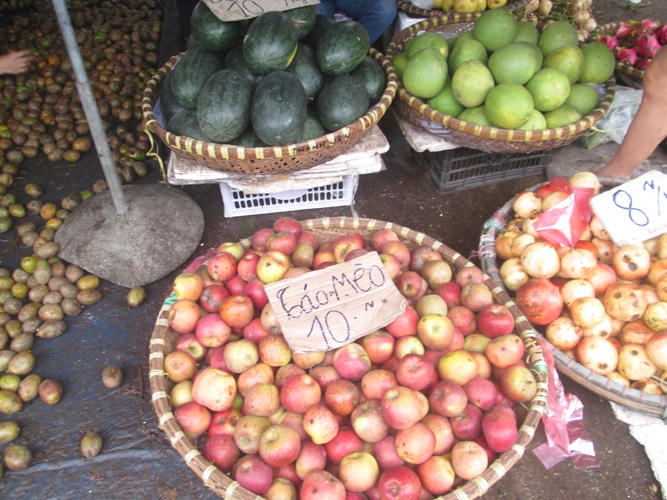 Các tiểu thương ở đây buôn bán tùy theo từng mùa để có những loại hoa quả khác nhau.