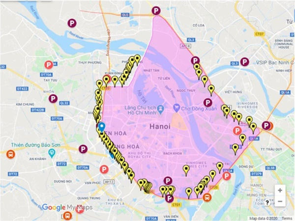 Vị trí dự kiến sẽ đặt 87 "trạm thu phí" đối với xe ô tô cá nhân vào nội đô được Sở GTVT Hà Nội xây dựng (Ảnh: Sở GTVT cung cấp).