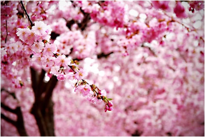 Hoa anh đào hay sakura, là loại hoa nhỏ, có nhiều màu từ gần như trắng đến hồng thẫm, với đặc điểm nở rộ cùng một lúc. Mỗi cây có rất nhiều hoa nên khi nở trông không khác nào một bó hoa khổng lồ.