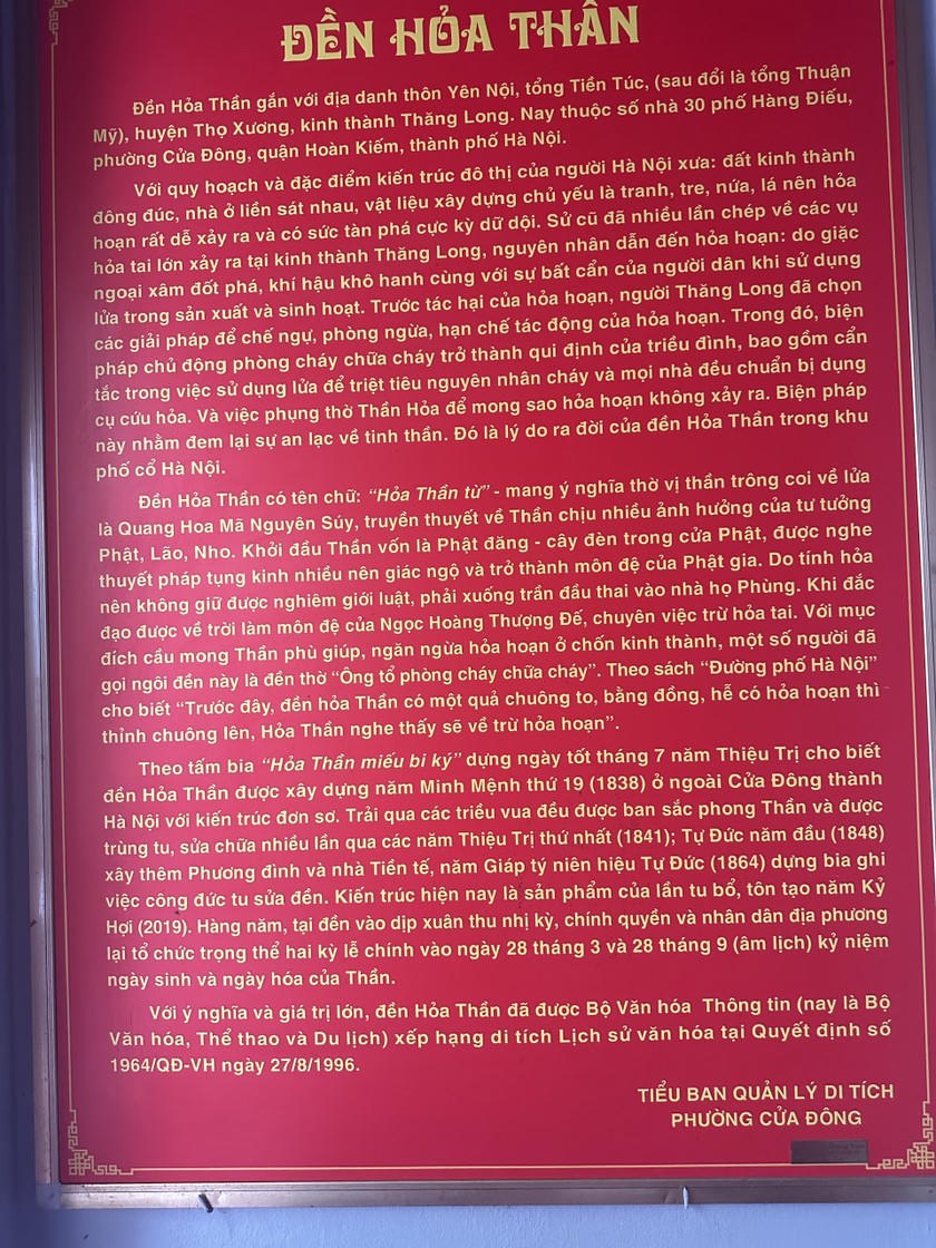 Hà Nội có một ngôi đền thờ Thần Lửa