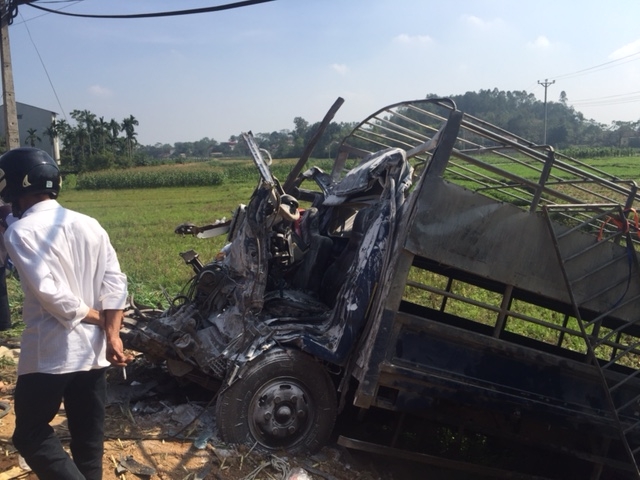 Cú va chạm mạnh khiến cho xe tải bị hất văng xuống ruộng, đầu xe bị nát và biến dạng hoàn toàn. Xe Container lật và nắp ca pô bay sang làn đường đối diện. Tại hiện trường, đầu Container bị lật nằm chắn ngang đường khiến cho giao thông tại đây tê liệt trong thời gian dài.