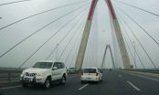 | Hình ảnh xe biển xanh đi ngược chiều trên cầu Nhật Tân. (Ảnh cắt từ clip) |