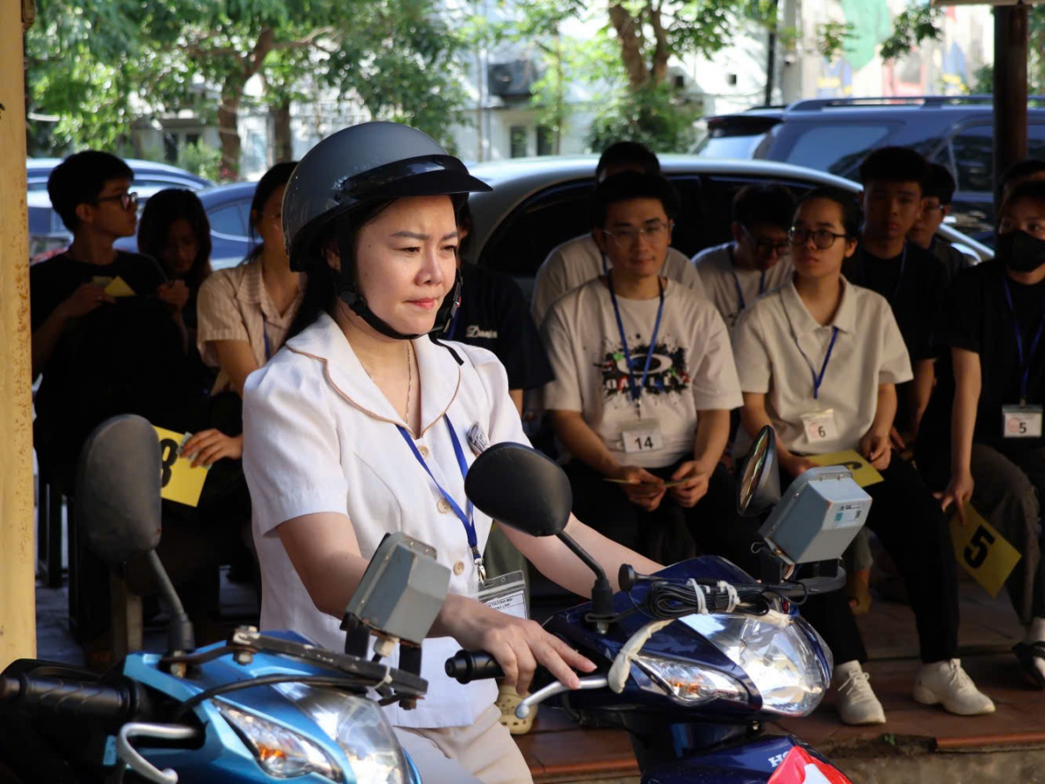 | Học viên dự sát hạch cấp GPLX hạng A1. Ảnh: Công an Hà Nội |