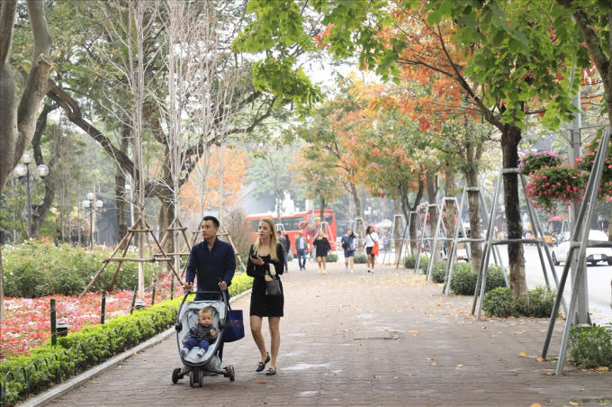 Hà Nội thân quen, cung đường, cây xanh bắt đầu chuyển sắc đỏ, vàng. Người đi đường xuýt xoa, chiêm ngưỡng, rồi không ít lần ngẩn ngơ đến mức khờ dại.