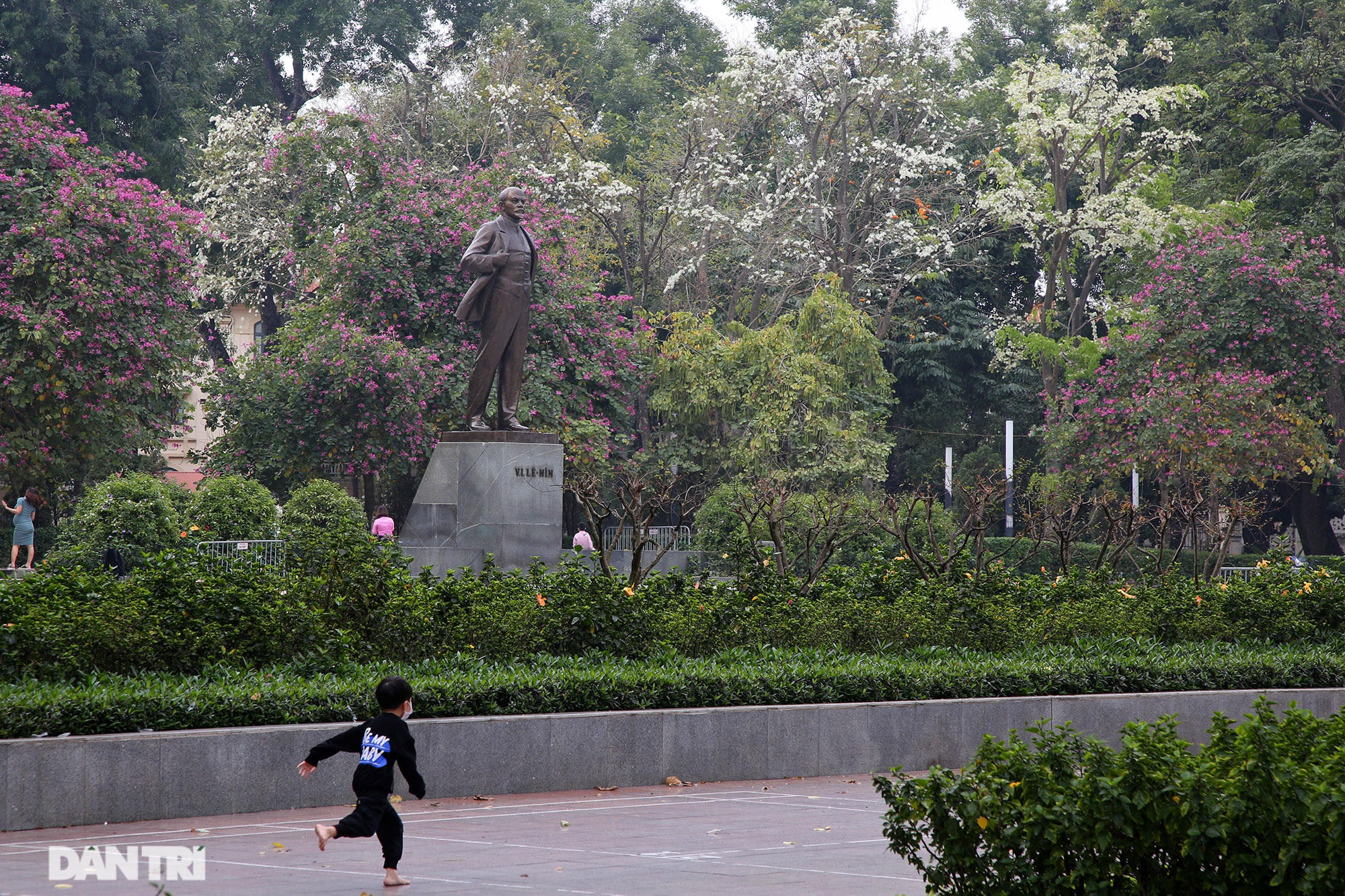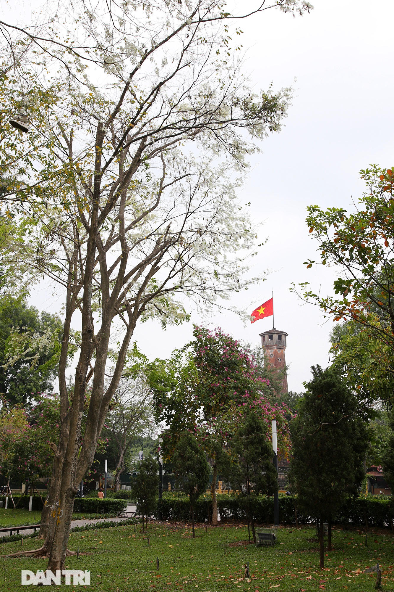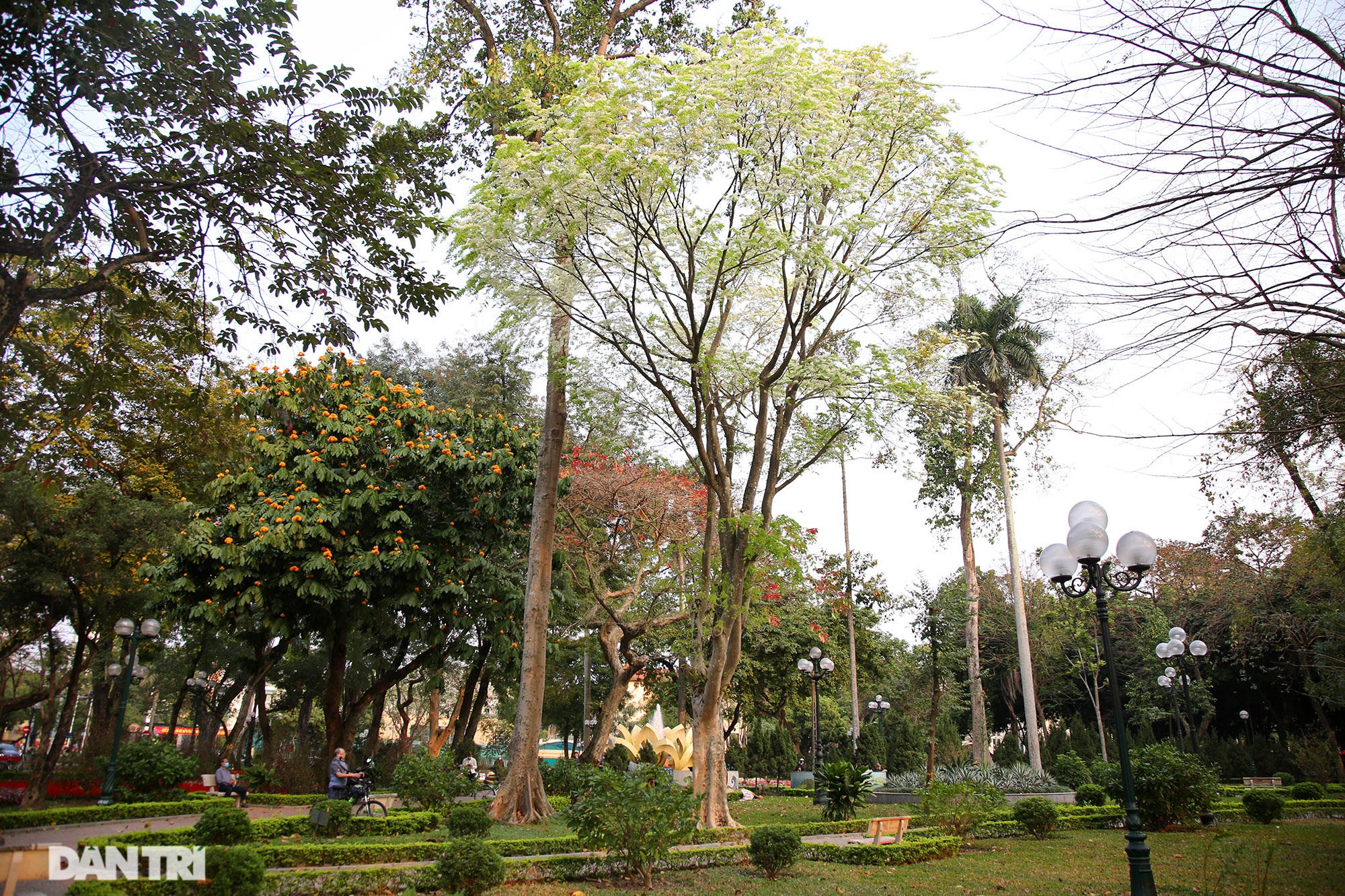 Tại vườn hoa Mai Xuân Thưởng, nơi có 2 cây sưa đang ra hoa tuyệt đẹp.