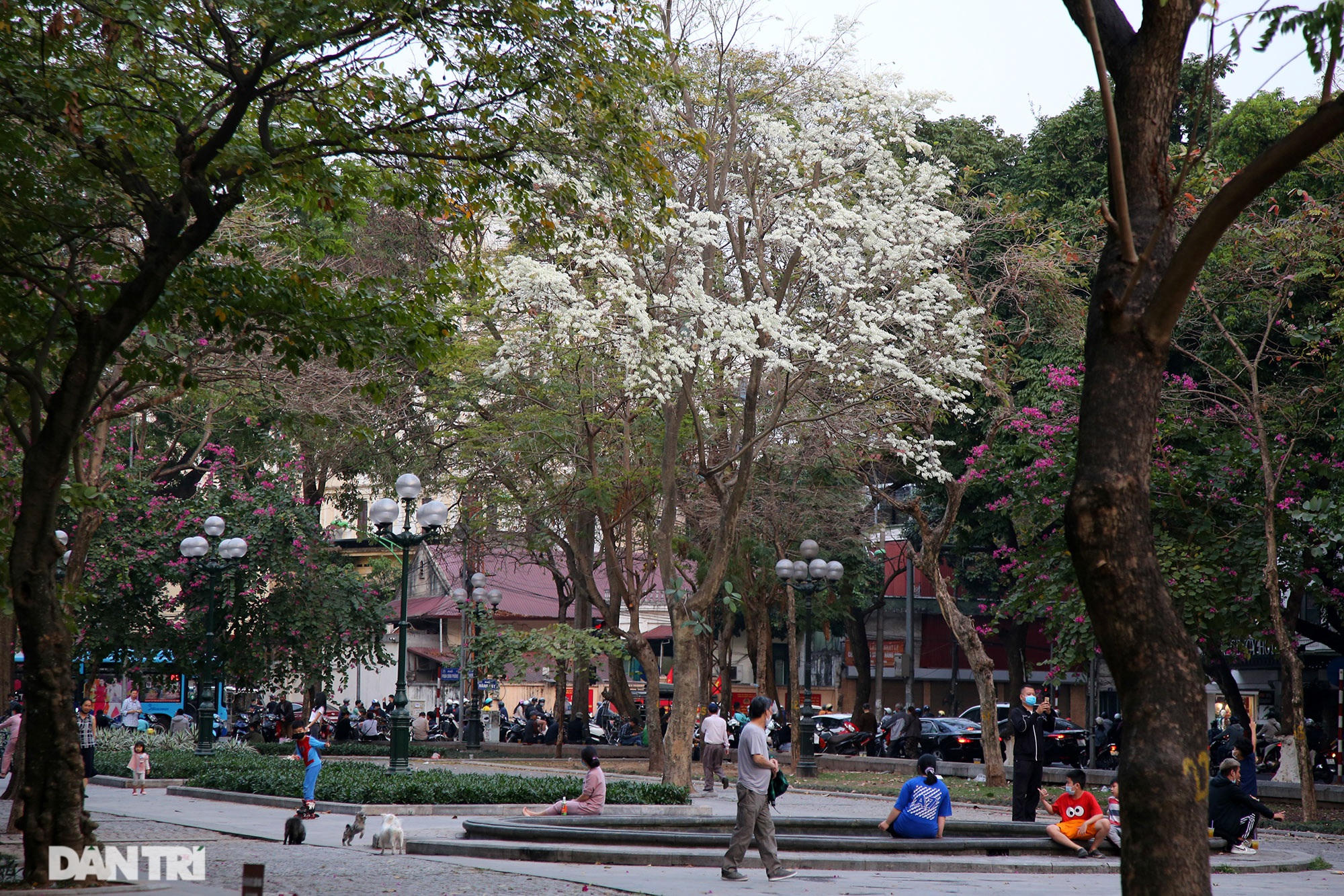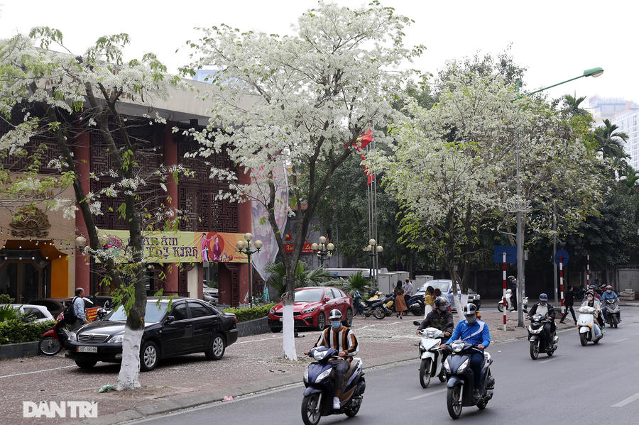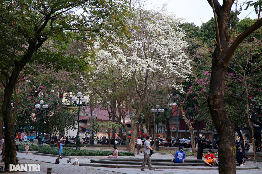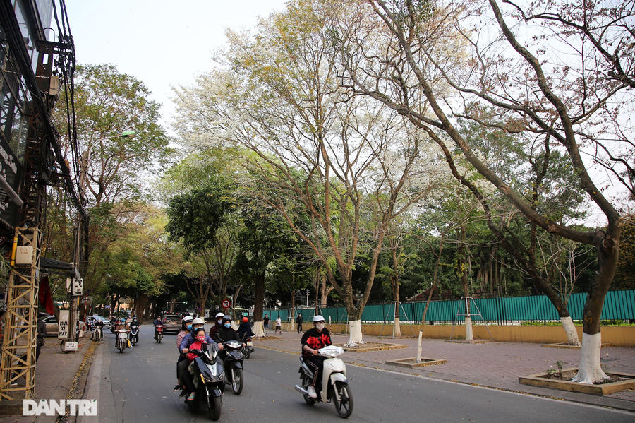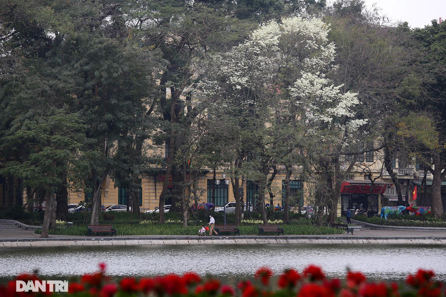 Tán cây như những bông tuyết tạo nên cảnh đẹp lạ cho mùa xuân của Hà Nội.