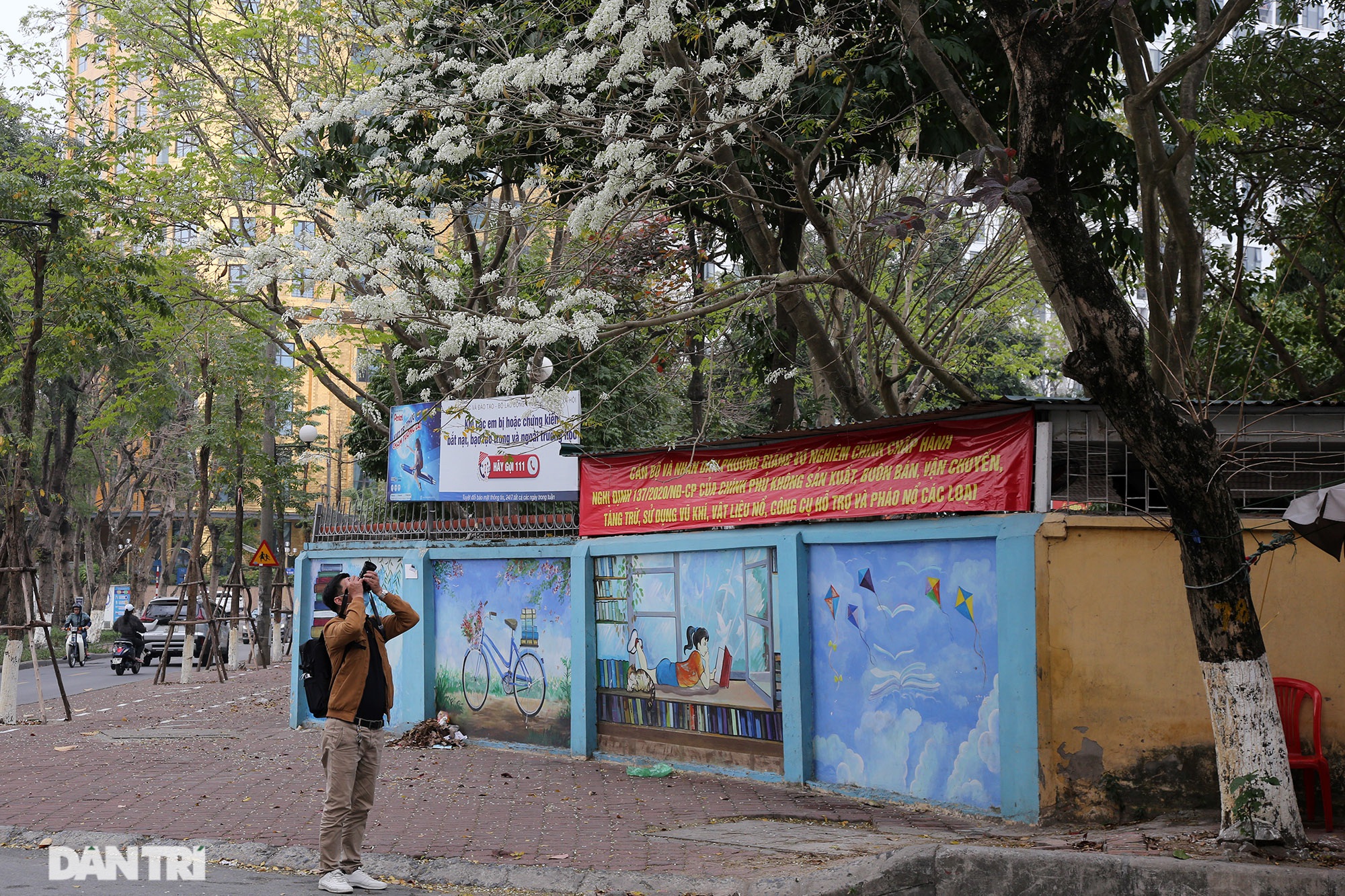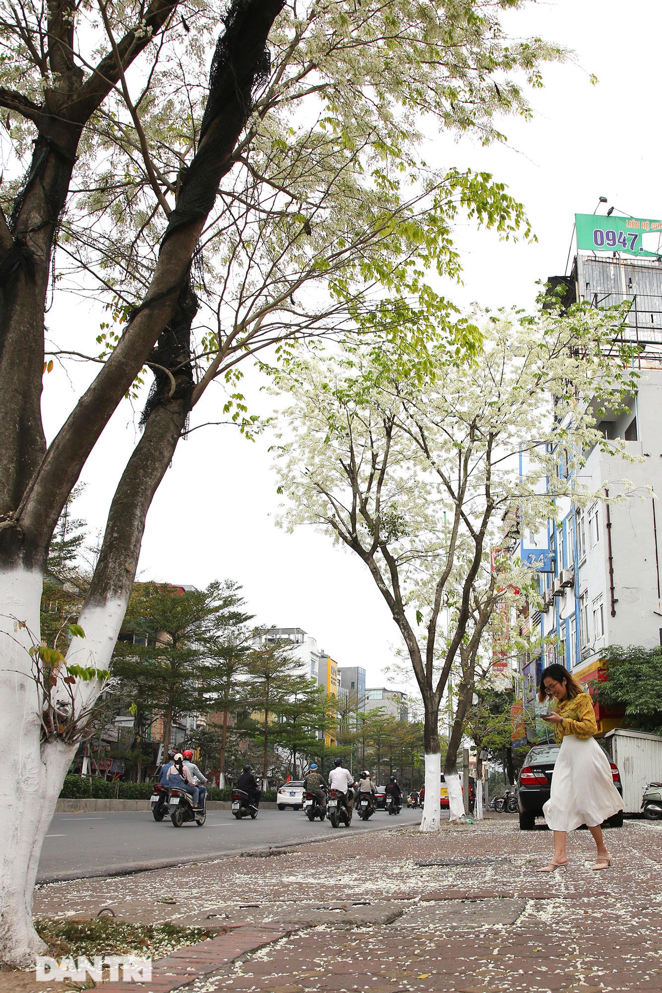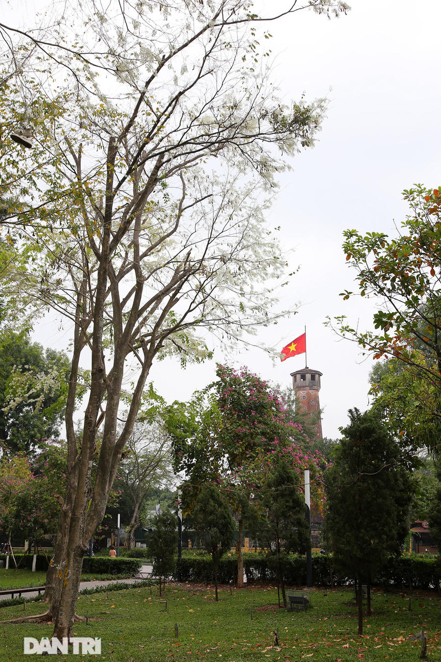 Tán cây như những bông tuyết tạo nên cảnh đẹp lạ cho mùa xuân của Hà Nội.