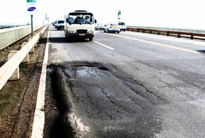 Từ năm 2016 đến nay, đơn vị quản lý đường bộ thực hiện sửa chữa cục bộ các vị trí bê tông nhựa bị trượt, xô dồn, ổ gà để đảm bảo giao thông, nhưng thời gian gần đây do mưa nhiều, dù được sửa chữa nhưng mặt cầu vẫn tiếp tục bị trồi, sụt và hư hỏng.