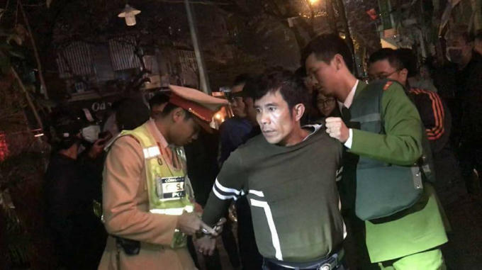 Lập tức, Hùng vùng dậy bỏ chạy về phía phố Hoà Mã, cùng thời điểm trên tổ công tác Công an phường Ngô Thì Nhậm, Đội CSGT trật tư cơ động Công an quận Hai Bà Trưng phối hợp bắt giữ được Hùng tại trước cửa số nhà 45 phố Hoà Mã.