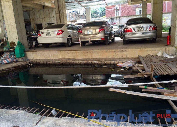 Theo ghi nhận của PV Pháp luật Plus, hiện tại công trình này mới hoàn thành phần khung của 2 tầng hầm và các cột bê tông trụ đỡ phần mái bằng tầng 1. Hiện nay hạng mục 2 tầng hầm của công trình ngập trong nước xuất hiện nhiều cá và rác thải gây ô nhiễm, rất mất vệ sinh.
