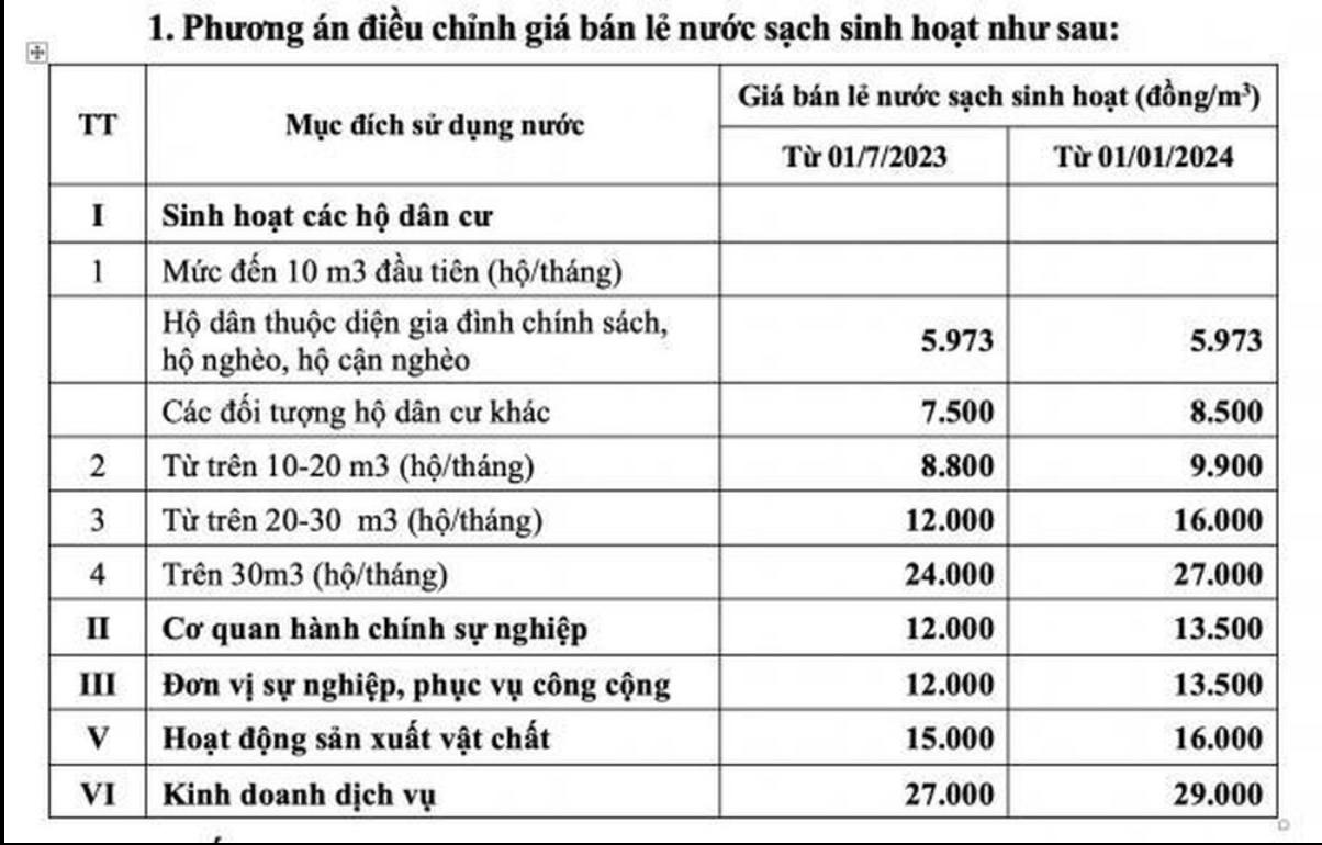 Đáng chú ý, từ đầu năm 2024, giá nước sạch tăng lên mức 8.500 đồng/m3.