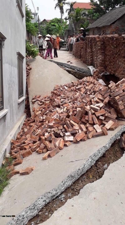Khoảng thời gian trên, căn nhà của anh Vũ Văn Hào xảy ra tình trạng sụt lún, nghiêng nhà. Ngay sau đó, gia đình đã báo cáo lên chính quyền địa phương.