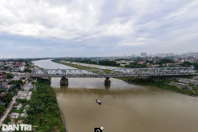 Toàn cảnh cầu Đuống bắc qua sông Hồng, nối quận Long Biên và huyện Gia Lâm, Hà Nội (Ảnh: Nguyễn Bắc).