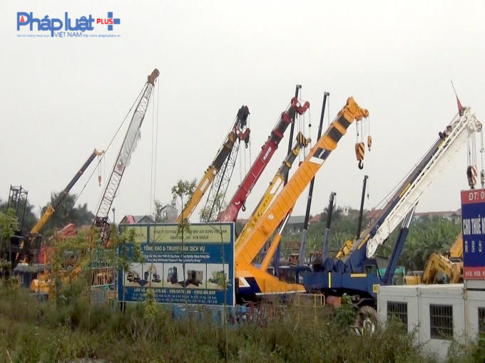 Có mặt tại nơi tập kết bãi xe mà người dân phản ảnh, phóng viên Pháp luật Plus nhận thấy, có hàng trăm chiếc xe các loại như: xe ben, xe bồn, xe cẩu,… được trưng bày, tập kết trên hàng nghìn m2 đất chạy dọc theo Cao tốc Hà Nội – Bắc Giang.
