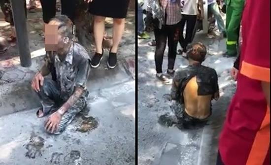 Người đi đường vô cùng hoảng hốt khi thấy người đàn ông bất ngờ đổ xăng lên người rồi châm lửa tự thiêu.