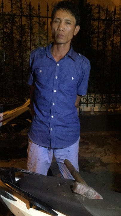 Tiếp tục kiểm tra, đối tượng không xuất trình được đăng ký xe, GPLX hay có chìa khóa xe. Tiến hành mở cốp xe, phát hiện thêm một chiếc búa dài khoảng 35cm.