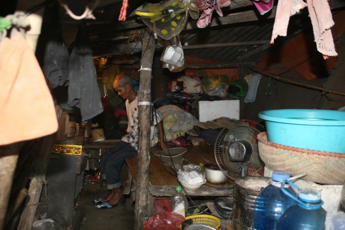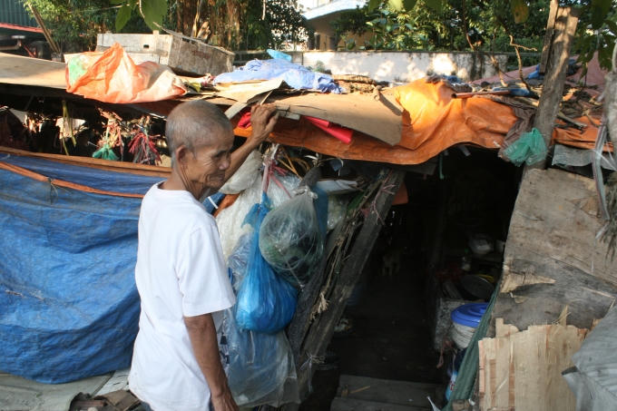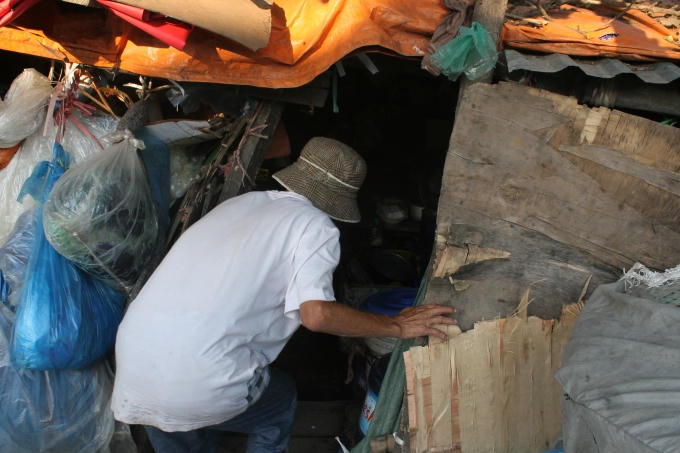 2/3 diện tích căn lều được dùng để đựng phế liệu mà đôi vợ chồng già rong ruổi khắp các con phố Hà Nội nhặt về. Phần diện tích nhỏ còn lại là nơi sinh hoạt, ngủ nghỉ, ăn uống của hai vợ chồng và hơn 10 con chó.