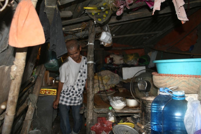 | Vì diện tích quá chật hẹp nên ông Hùng phải lách người mới vào được bên trong |