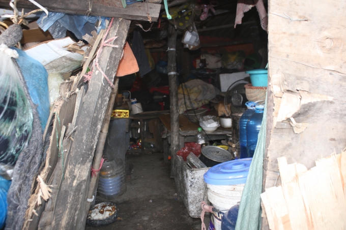 Túp lều có diện tích hãn hữu là vậy nhưng cũng được chia làm 2 phần bởi những tấm gỗ đã mục nát.