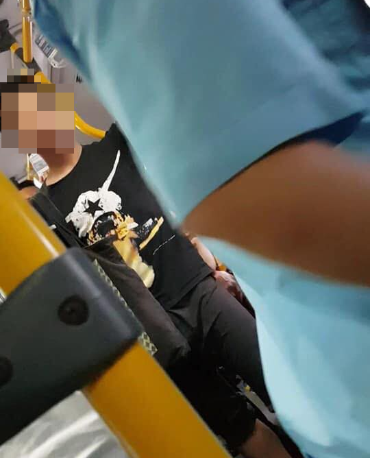 Thanh niên này đứng ngay sau ghế ngồi của 2 cô gái và lúc sau có hành vi "tự sướng". Phát hiện sự việc, một số người ngồi sau đã la lớn để phụ xe, tài xế và hành khách trên xe biết. 2 cô gái cũng hoảng loạn.