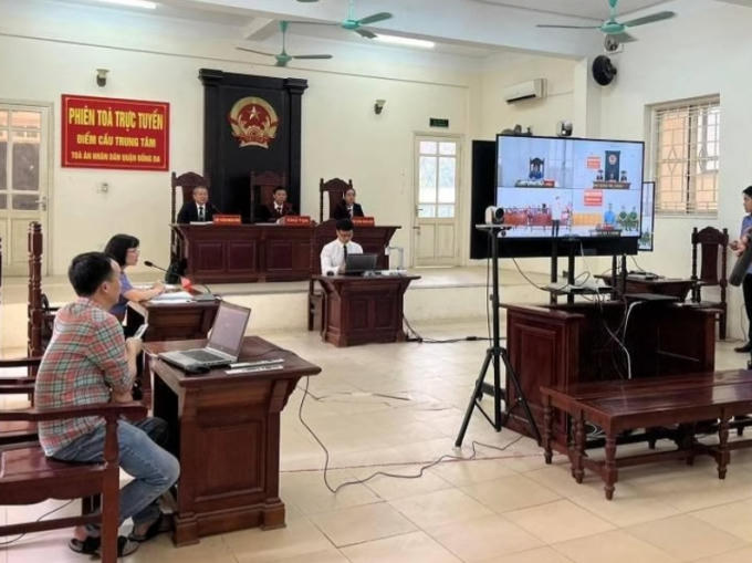 Đây là phiên tòa đặc biệt, được tổ chức dưới hình thức xét xử trực tuyến giữa hai điểm cầu tòa án và trại tạm giam. Thẩm phán Đào Vĩnh Tường, Chánh án TAND quận Đống Đa, trực tiếp ngồi ghế chủ tọa. Tại điểm cầu phòng xét xử thuộc TAND quận Đống Đa, những người có mặt bao gồm HĐXX, đại diện VKS.