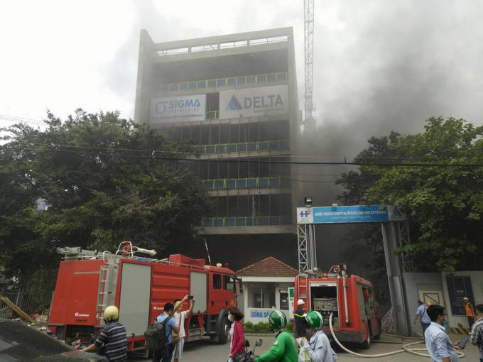 Công trình bên trong bệnh viện Việt Pháp, phố Phương Mai, Hà Nội bất ngờ bốc cháy dữ dội, khiến công nhân hoảng loạn tháo chạy.