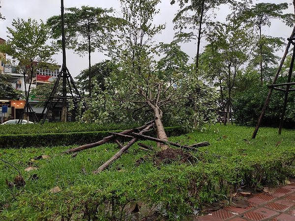 Do ảnh hưởng của hoàn lưu bão số 3, một số cây trên địa bàn thủ đô bị gãy đổ. (Ảnh TH)