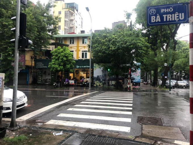 Một số tuyến phố trung tâm Hà Nội vắng người tham gia giao thông do gió to và mưa lớn. (Ảnh Quốc Anh)