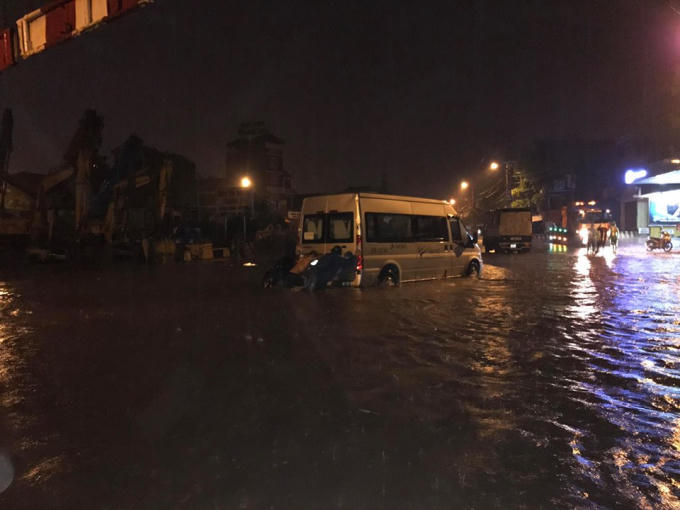 Cơn mưa lớn khiến nhiều tuyến phố của Thủ đô ngập sâu, giao thông tại một số nơi bị tê liệt, barie đã được dựng lên để cảnh báo người dân.