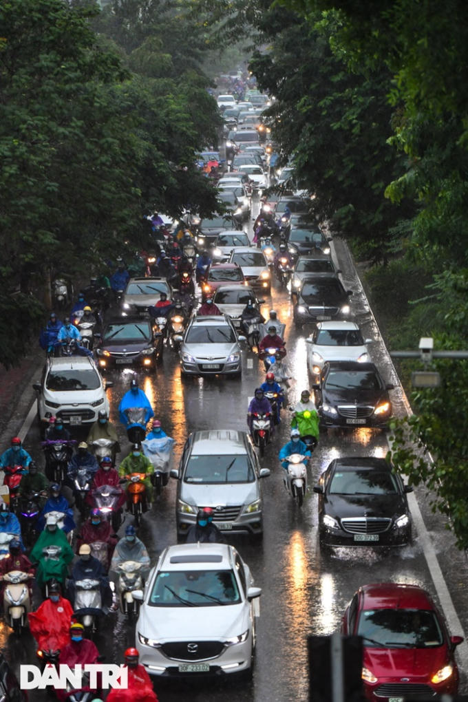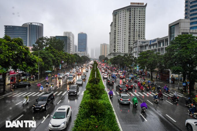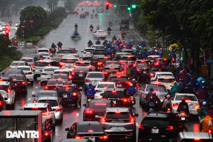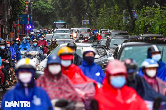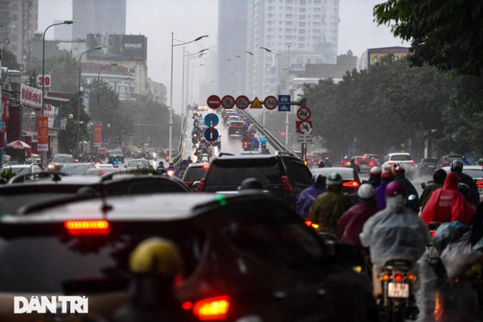 Sáng đầu tuần, do ảnh hưởng của bão số 7 kèm không khí lạnh đổ về khiến nền nhiệt của Hà Nội giảm mạnh, nhiều tuyến đường ùn tắc khiến hành trình đến nơi làm việc của người dân trở lên khó khăn.