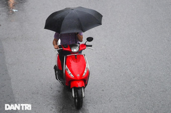 Nhiều người không kịp đem theo áo mưa vội vàng cầm ô lưu thông trên đường trong thời tiết mưa lớn, việc này khá nguy hiểm trong điều kiện gió thổi mạnh.