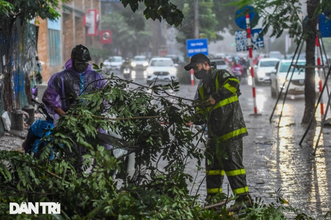 Gió mạnh, một số cây xanh bị quật đổ, gãy cành trên một số tuyến phố. Nhân viên cây xanh đã có mặt để cưa dọn, hạn chế ùn tắc.