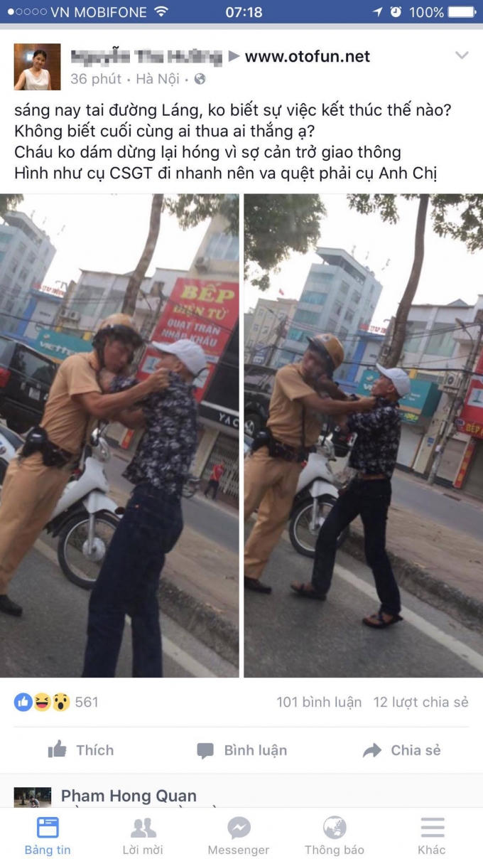 Liên quan đến sự việc trên, trao đổi với chúng tôi, Trung tá Lê Tú, Đội trưởng Đội CSGT số 3 (CA TP Hà Nội) xác nhận, có vụ việc một chiến sĩ CSGT của đội bị đối tượng xăm trổ đánh. Trung tá Lê Tú cho biết, vào sáng nay, trung úy T. của Đội CSGT số 3 đang đi làm nhiệm vụ qua đường Láng thì thấy một đối tượng xăm trổ, không đội mũ bảo hiểm có biểu hiện lạng lách, đánh võng gây nguy hiểm cho người tham gia giao thông nên trung úy T. đã dừng xe chặn bắt.