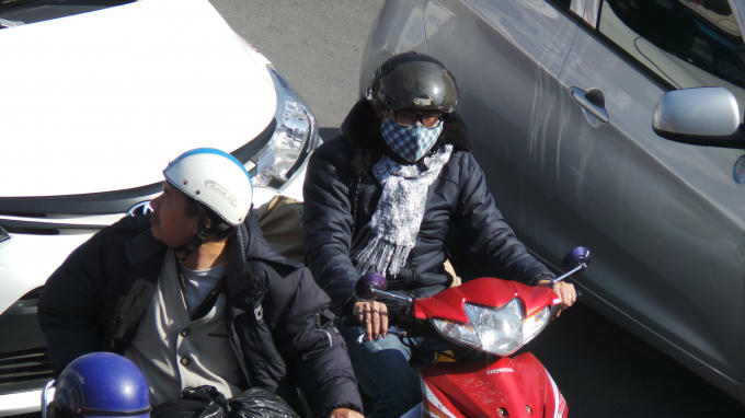 Mặc dù thời tiết Hà Nội có nắng nhưng tiết trời vẫn rất lạnh. Mọi người ra đường đều phải ăn mặc "kín cổng cao tường".