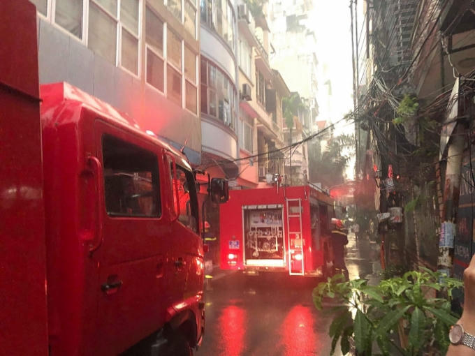 Ngay sau khi nhận được tin báo, lực lượng PCCC quận Đống Đa đã có mặt tại hiện trường.